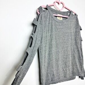 Chaser NWOT Strappy Cutout Long Sleeve Scoop Neck Casual Top Heather Gray Small