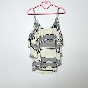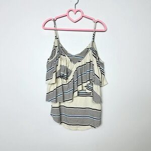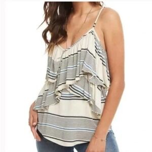 Chaser NWT Cool Jersey Crossover Ruffle Striped Cami Tank Top Cream Size Medium