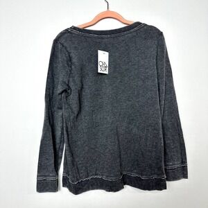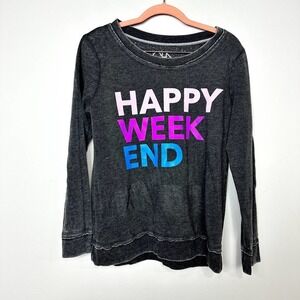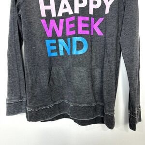 Chaser NWT Happy Weekend Graphic Crewneck Long Sleeve Tee Charcoal Size Medium