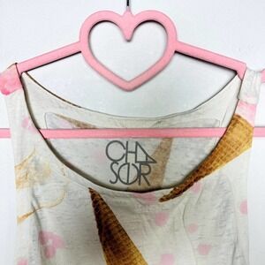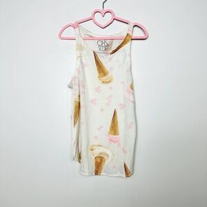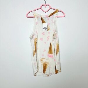 Chaser NWT Ice Cream Cone Sleeveless Crew Neck Shirttail Tank Top Cream Sz Small