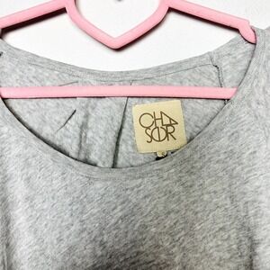 Chaser NWT Scoop Neck Flounce Sleeve Raglan Oversized Blouse Gray Size Small NEW