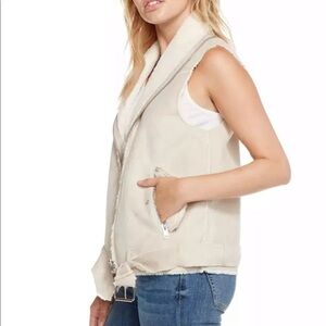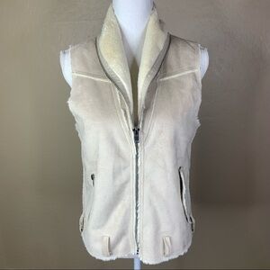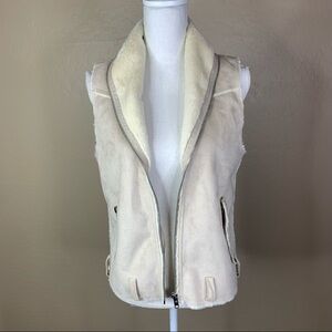 You will fall in love with this faux suede fur lined moto vest. Front zipper closure. Two secure pockets. Sleeveless.