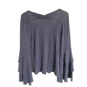 Chaser Navy Blue Bell Sleeve Blouse Ribbed Button Front