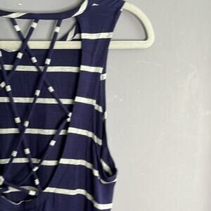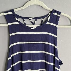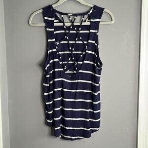 Chaser Navy Blue and Gray Striped Sleeveless Strappy Back Top Size Medium