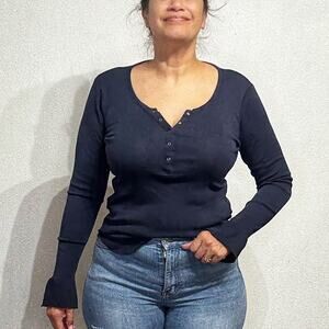 Chaser Navy Long Sleeve Henley Top Sz M NWT
