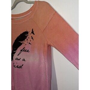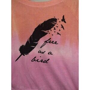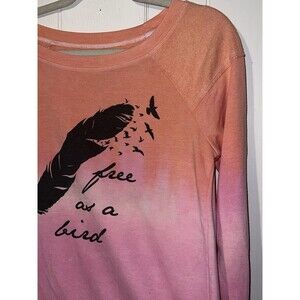 Chaser Ombre Pink & Orange Feather "Free as a Bird" Pullover Sweatshirt Small
