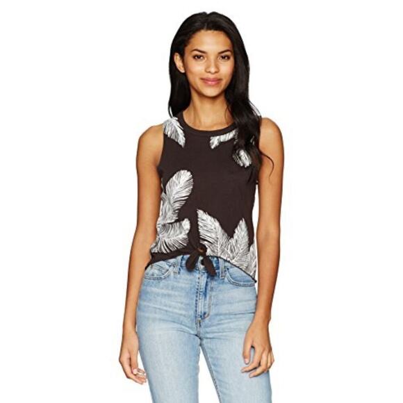 Chaser Palm Leave Jersey Tie Front Muscle Tank Top Black/White Women's M NWOT