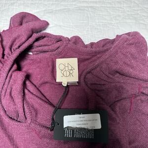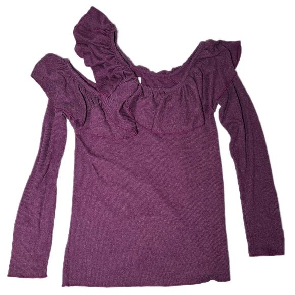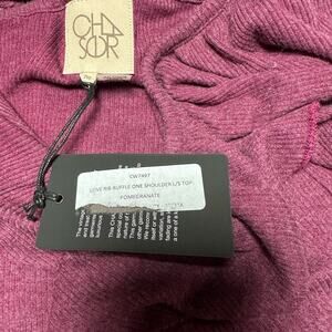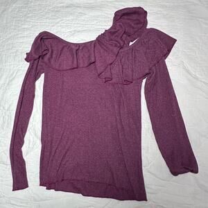 Elegant pomegranate top with ruffled details. One shoulder design.