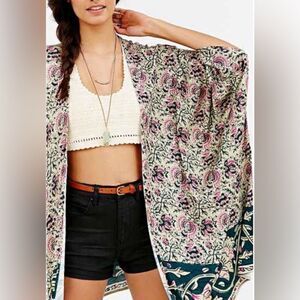 Chaser Printed Square-Sleeve Oversized Kimono Wrap Mauve Olive Cream Size XS/S