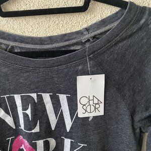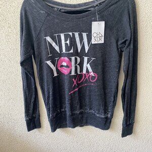 Chaser Revolve Top Black “NEW YORK XOXO" Lips Long Sleeve Sweater NEW Small