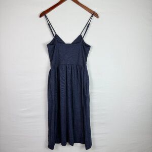Chaser Ribbed Ruched Front Spaghetti Strap V Neck Midi Dress Navy Blue M