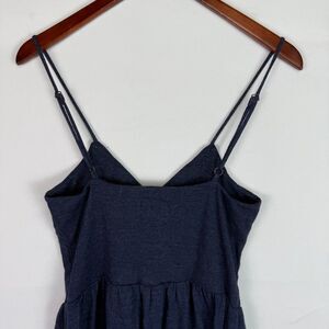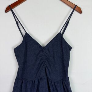 NWT Chaser Ribbed Ruched Front Spaghetti Strap V Neck Midi Dress Navy Blue M