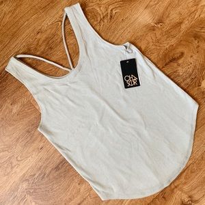 Ribbed Chaser tank in cool grey. Curved hem, cute cord detail on the back. Brand new with tags.