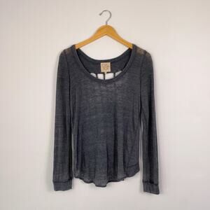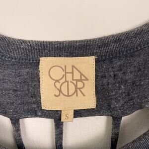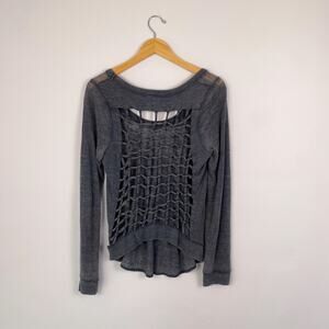 Chaser Scoop Neck Sweater with Woven Lattice Open Back Gray Small