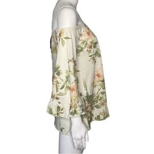 Chaser Shirt Womens Medium Cream Green Floral Off Shoulder Blouse Botanical