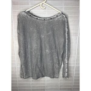 Chaser Shirt Women’s Small Gray Ribbed Long Sleeve Snaps Cotton Blend
