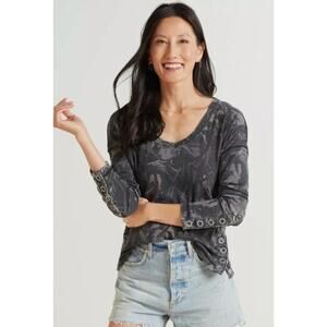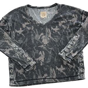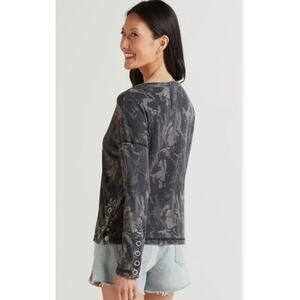 Chaser Shirt Womens X Small Gray Camo Vintage Rib V Neck Top Snap Detail