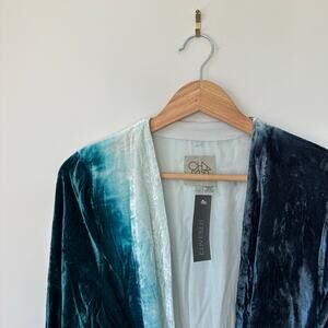Chaser Silk Blend Lush Tie Dye Kimono Teal White S NWT