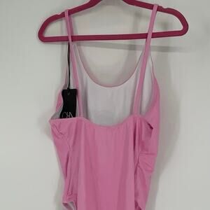 Chaser Size M Pink Red Swim One-Piece Swimsuit Heart Print Scoop Neck R1-4