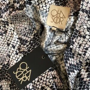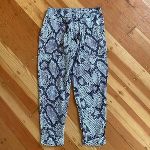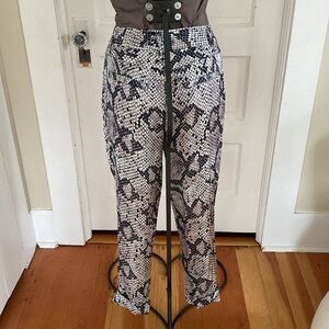 Chaser NWT Silky snakeprint pleat front pants with snap button closure size small.
