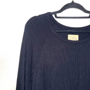 Chaser black waffle knit thermal top. In excellent condition! Crew neckline. Long dolman sleeves. Adjustable elastic tie waistline. Soft waffle knit lightweight material. True black color. Size medium.