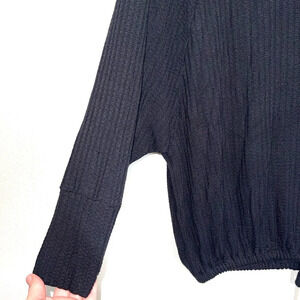 Chaser Solid Black Tie Hem Dolman Sleeve Waffle Knit Relaxed Top Medium Women’s