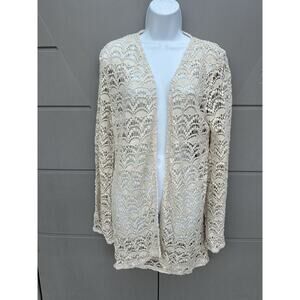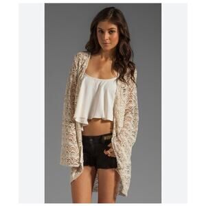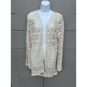 Chaser Spanish Lace Crochet Open Front Cardigan Kimono Jacket In Cream NWT Sz M