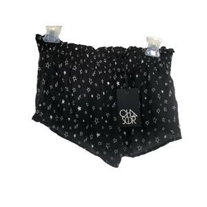 These lightweight shorts are perfect for throwing over your bathing suit. They come in a black and white star and lightning bolt pattern. They feature an elastic waist with ruffle detail for comfort. Pullon style. New with tags.