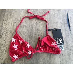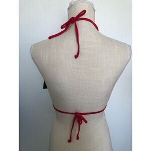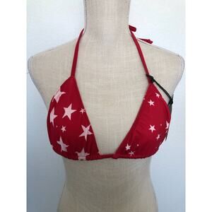 This adorable red and white bikini top is perfect for mixing and matching. It it a tie at the neck and back closure. It is a white star pattern that pops on a red background. It is lightly lined and is not padded. New with tags.