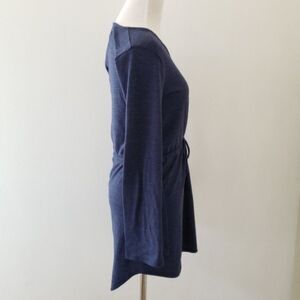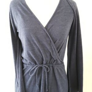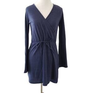Chaser Surplice Faux Wrap Mini Dress Navy Bell Sleeves Drawstring Women Small