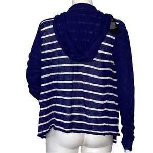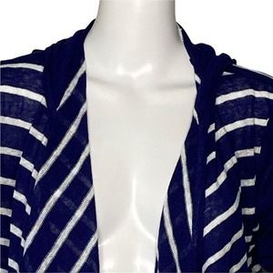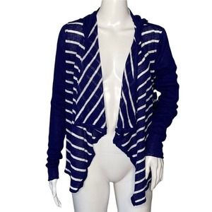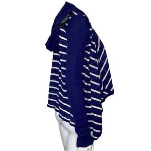 Chaser Sweater Women Medium Open Cardigan Blue White Striped Hood Waterfall Hem