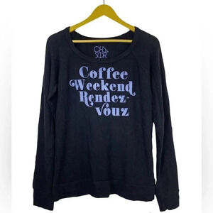 Chaser Coffee Weekend Rendezvous Black Sweatshirt Top Size Medium