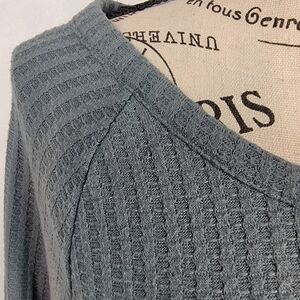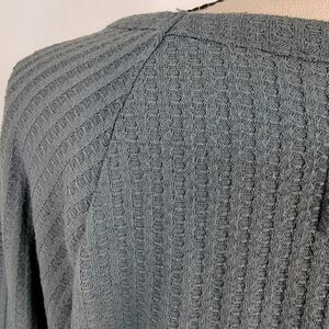 Chaser Sz L Waffle Knit Thermal Top Green Long Sleeve Button Cuffs
