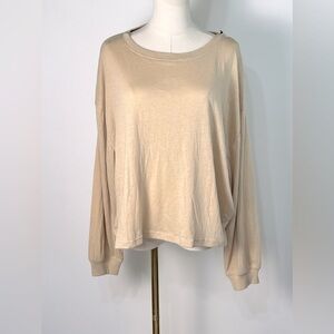 Chaser Tan Beige Oversized Lightweight Long sleeved Crewneck Shirt NWT Size Sm