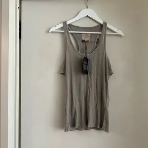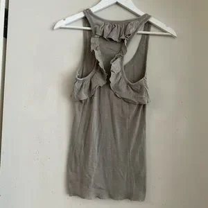 Chaser Taupe Ribbed Ruffle Racerback Tank