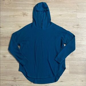 Chaser hoodie, waffle thermal, lightweight pullover, teal top, soft stretch, relaxed fit, long sleeve hoodie, cozy casual, layering piece, ribbed texture, size small