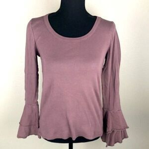 Chaser Tee Mauve Long Sleeve Double Ruffle Bell Sleeve Cotton Crew Neck Top S