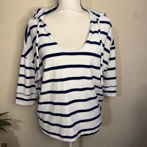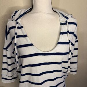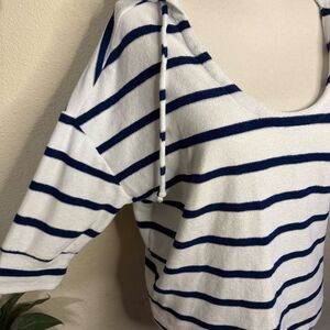 Classic top with navy and white stripes. Ideal for everyday style. Terry cloth material