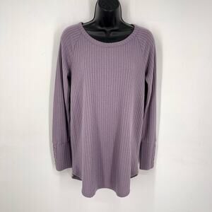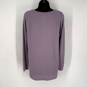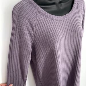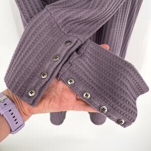 Chaser Thermal Waffle Long Sleeve Top Sz M Purple Button Cuffs Soft Stretch