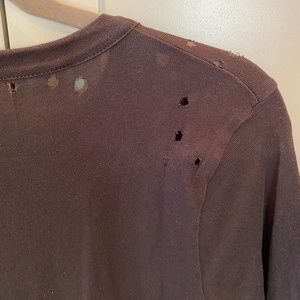 Easy, relaxed cotton tee with a little funk. Distressing throughout. Fun!