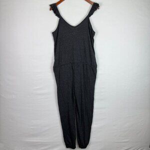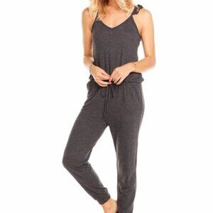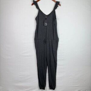 NWT Chaser Triblend Flutter Ruffle V Neck Drawstring Lounge Jumpsuit Grey M