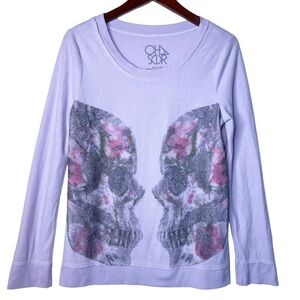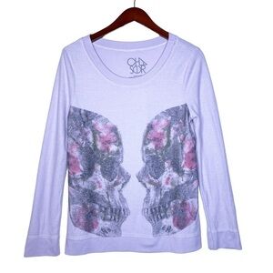 Chaser Twin Skulls Crew Neck Sweatshirt Top Size Medium in Pale Lavender