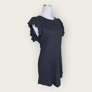 Chaser Vintage Triblend Flutter Sleeve Shirt Dress in Charcoal