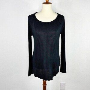 Chaser Waffle Knit Criss Cross Open Back Long Sleeve Tee Black Size M