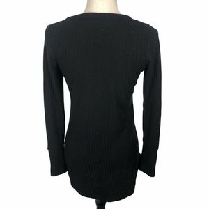 Chaser Womens Long Sleeve Waffle Knit Henley Thermal Top Button Cuffs Black S. Soft and stretchy with a high/low hem.
