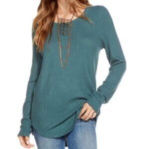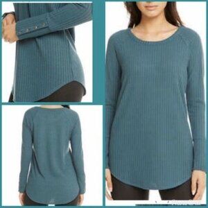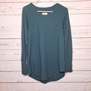 Chaser Waffle Knit Thermal Button Cuffs Teal Small Henley