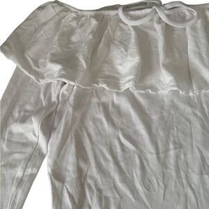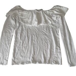 Chaser White Cotton Baby Ribbed Long Sleeve Shoulder Ruffle Top Size M