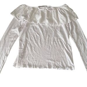 Chaser White Cotton Small Ribbed Long Sleeve Shoulder Ruffle Top Size M