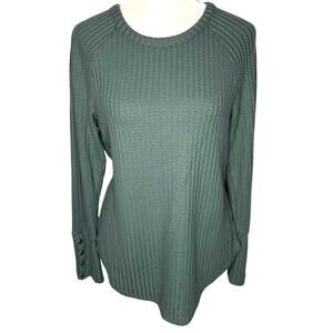 Chaser Winter Pine Teal Blue Thermal Waffle Knit Henley Pullover Women's Small