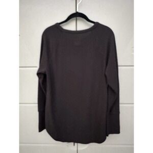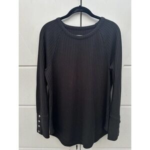 Chaser Women’s Black Long Sleeve Waffle Knit Thermal Top Button Cuffs Sz XLarge